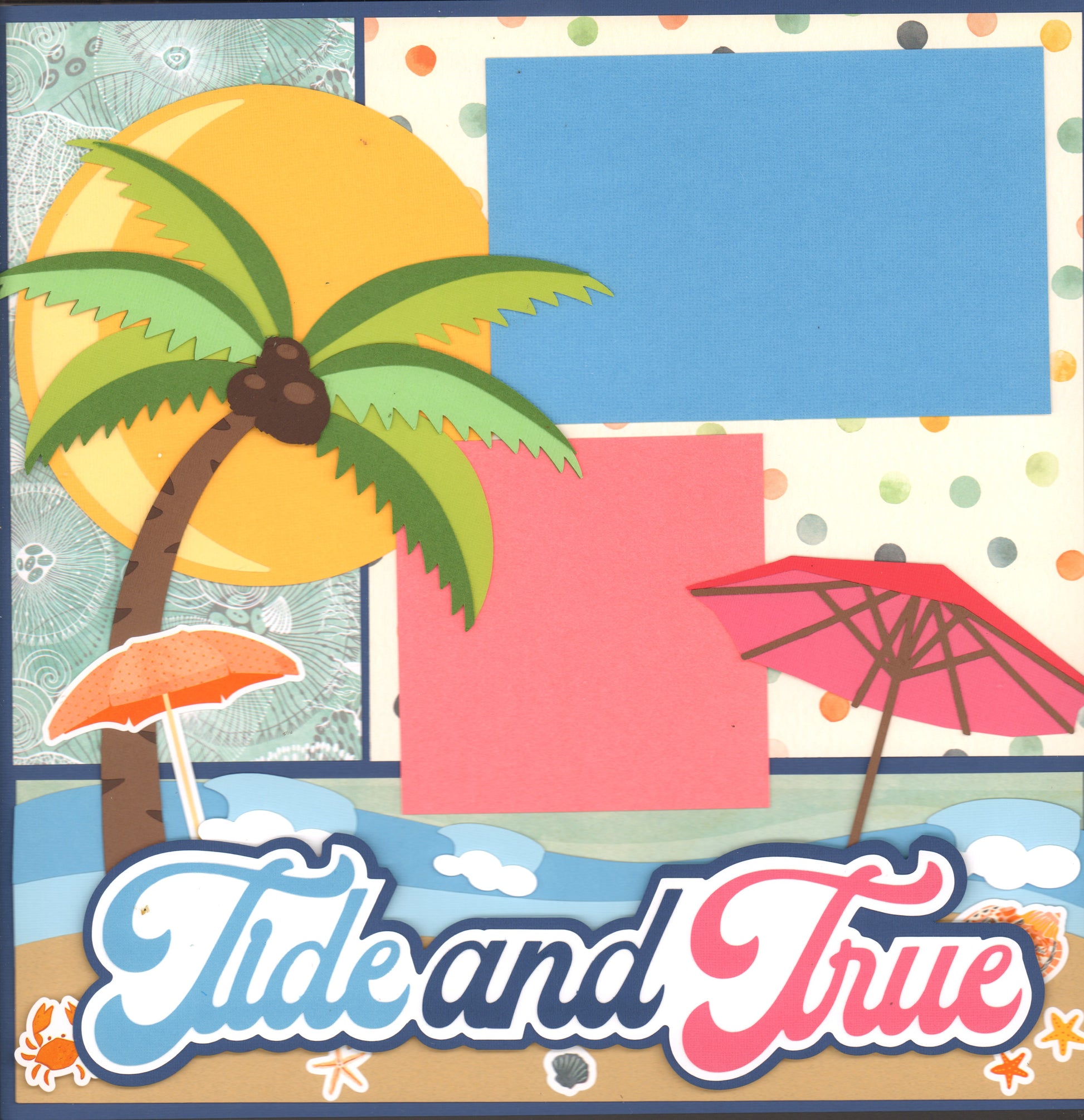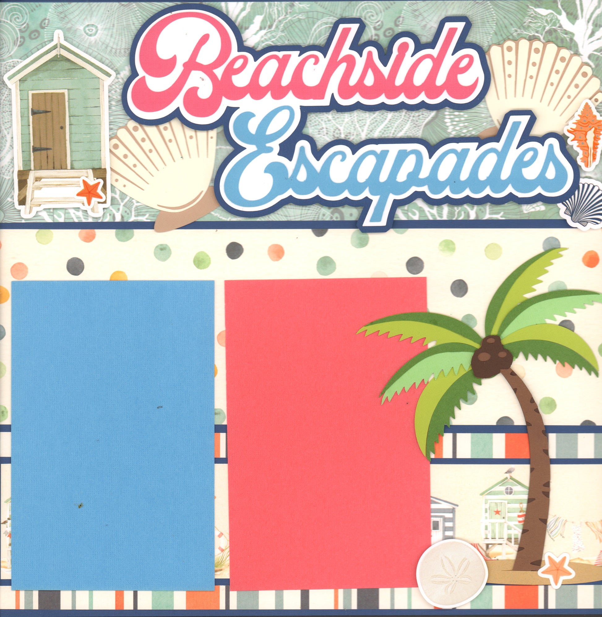 This is a 2 page 12 x 12 inch layout kit that includes everything you see to put all your beach and tropical pictures in. Make memories in minutes! All you need is wet and dry adhesives.