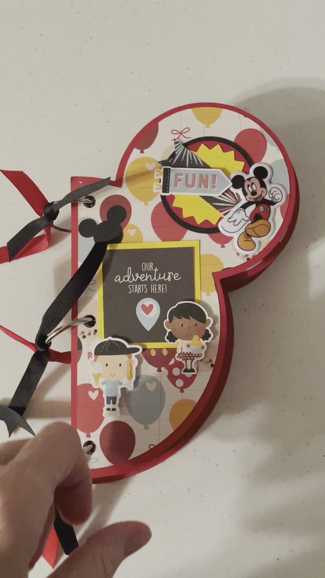 10 pages mini album that is made from magical paper from Simples Stories. It comes with everything you see pre cut. It comes with simple stories ephemera and a page of puffy disney stickers.